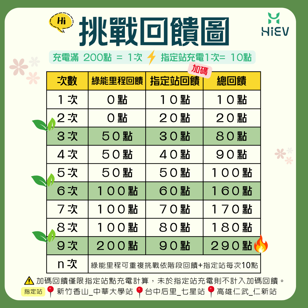 2.回饋金擇優發放,非累贈。例:消費者達到9次里程,僅發放200點充電金